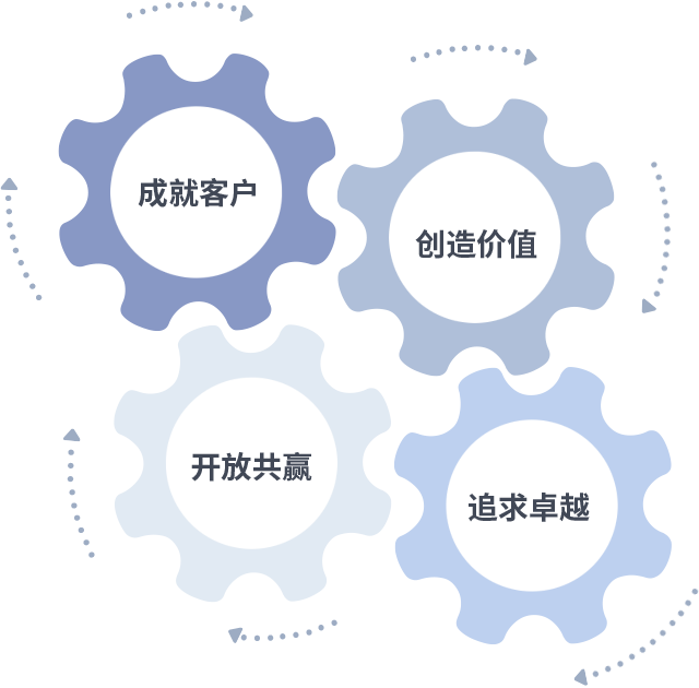成就客户是一切决策的出发点,创造价值是衡量所有工作的标准,追求卓越是太阳集团tyc9728做事做人的态度,开放共赢是太阳集团tyc9728的格局也是最终的结果。价值观的齿轮环环相扣,推动着组织里的每个人不断向前。